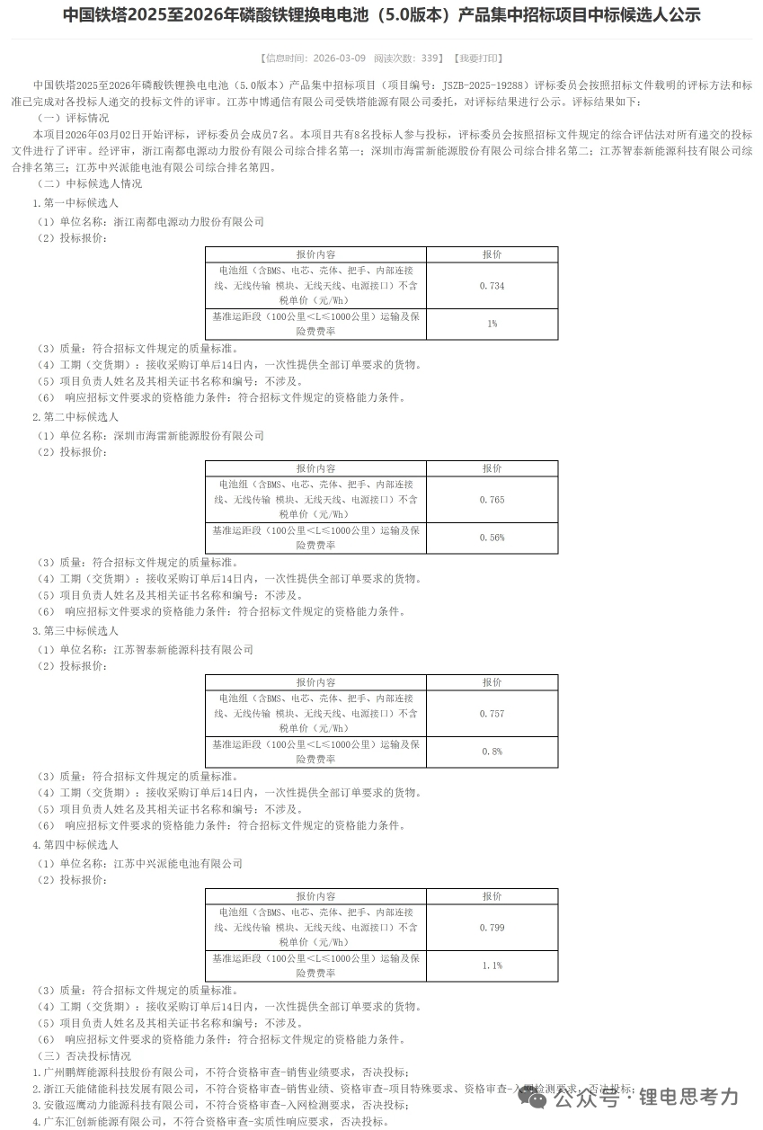 中国铁塔超级储能大订单,南都电源以第一名的优异成绩中标!估计金额在10亿以上!下