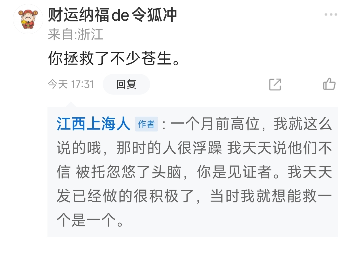 温馨提示: 1.根据《证券法》规定,禁止编造、传播虚假信息或者误导性信息,扰乱证券市场;2.用户在本社区发表的所有资料、言论等仅代表个人观点,与本网站立场无关,不对您构成任何投资建议。用户应基于自己的独立判断,自行决定证券投资并承担相应风险。《东方财富社区管理规定》