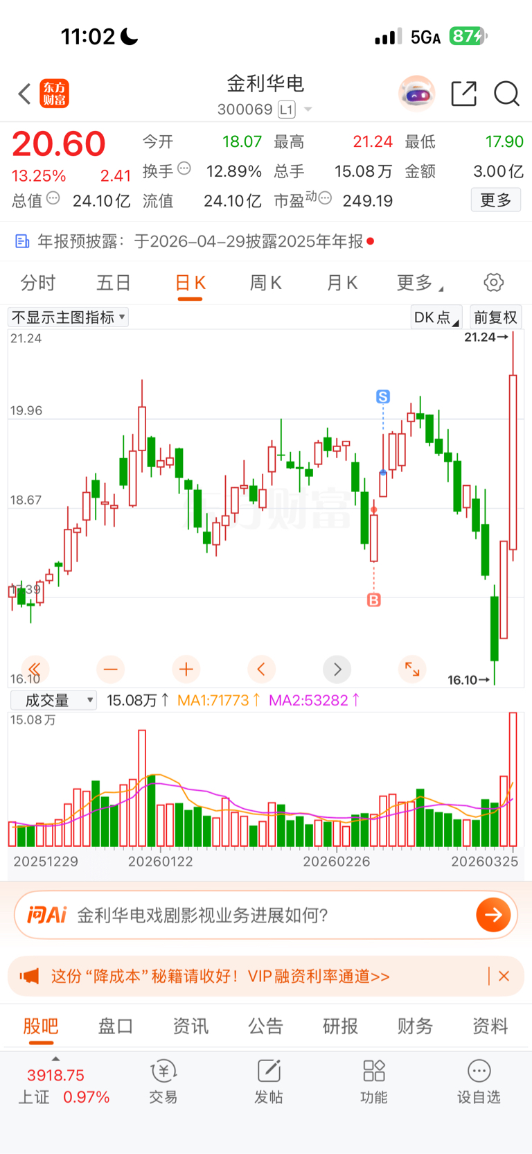 $金利华电(SZ300069)$ 错过了,赚一点点就跑了,活该我是韭菜