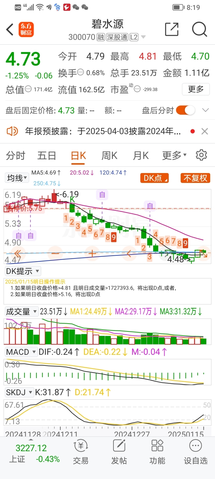 $碧水源(SZ300070)$ 技术上5日线上穿250线120线20线走成三线开花