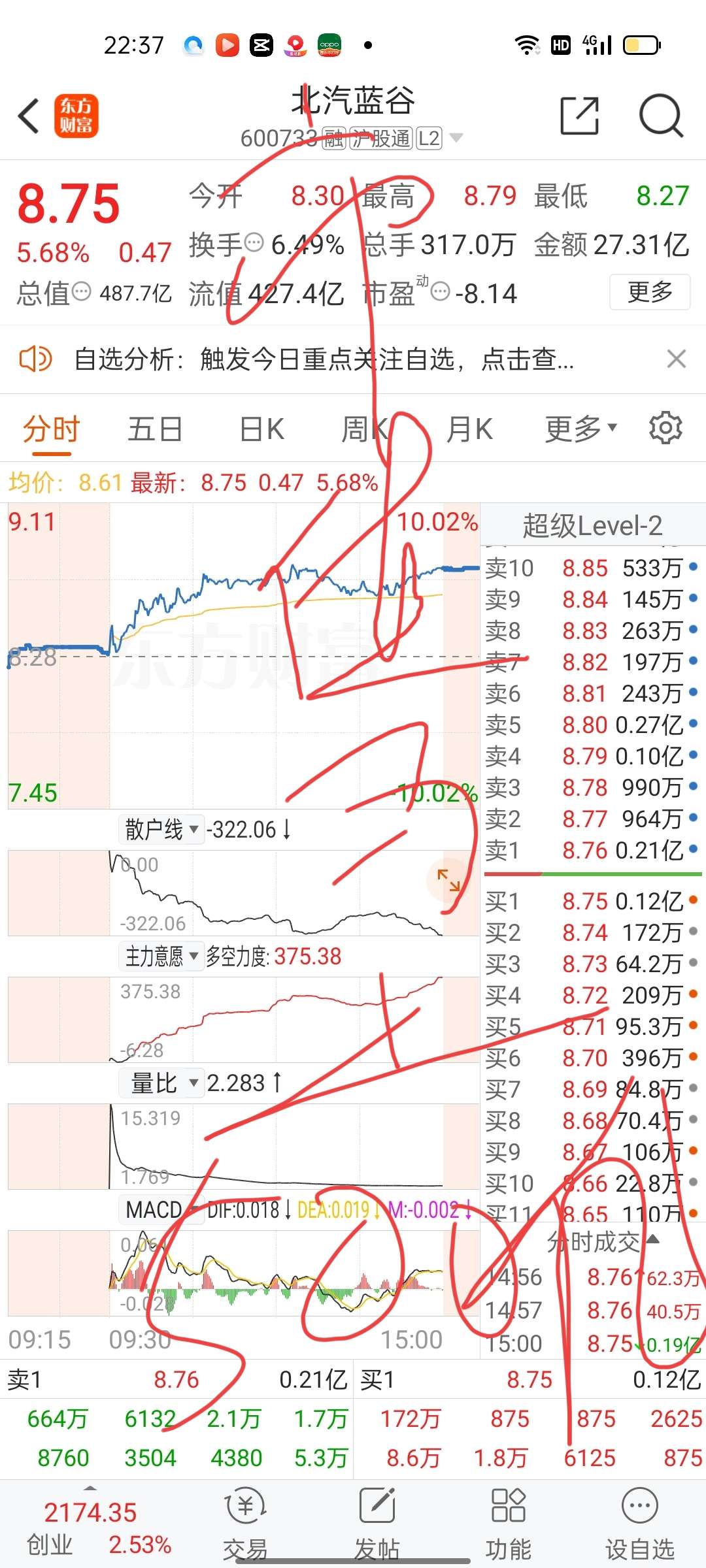 北汽蓝谷,心中的目标十五块,每年亏50多亿,静资产3毛钱,控制仓位,投制有风险