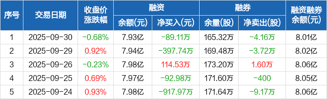 碧水源:融资净偿还89.11万元,融资余额7.93亿元(09-30)