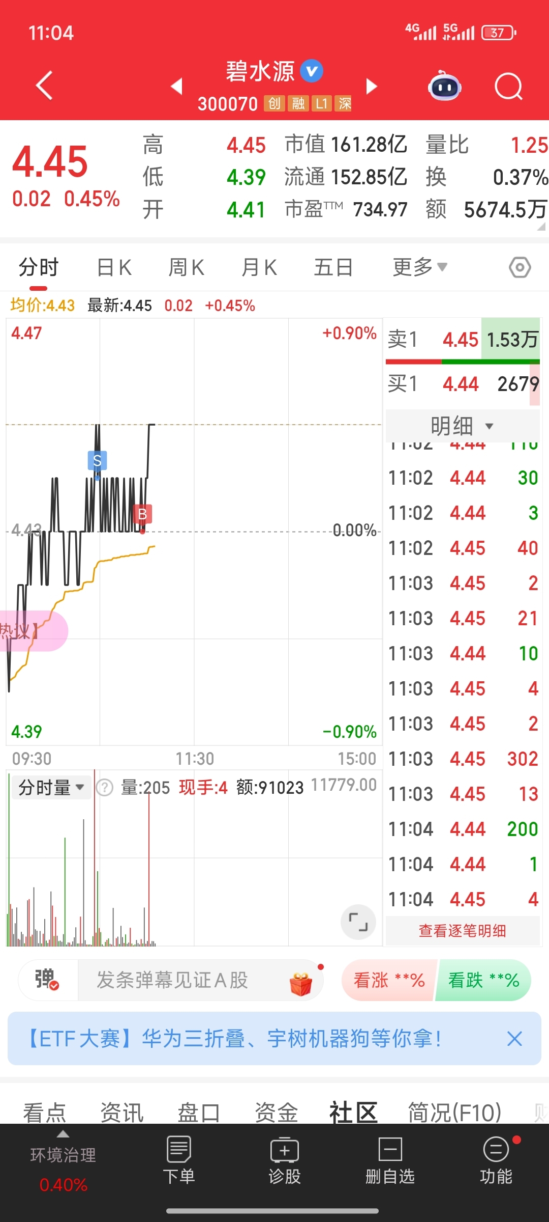 $碧水源(SZ300070)$ 刚刚道一亿大帅哥问,正好买进来了,积小胜为大胜