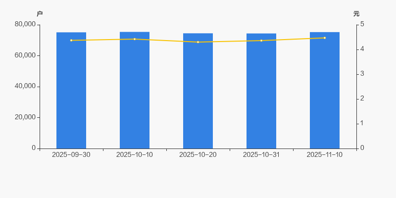 截至2025年11月10日,公司最新总股本为36.24亿股,其中流通股本为33.72亿股。户均持有流通股数量由上期的4.53万股下降至4.48万股,户均流通市值20.03万元。