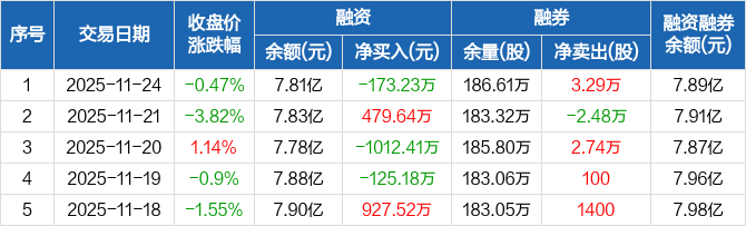 碧水源:融资净偿还173.23万元,融资余额7.81亿元(11-24)