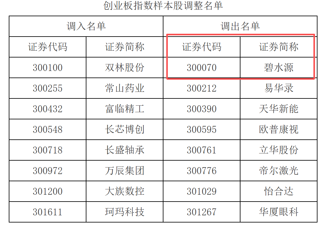 老碧调出创业板指数