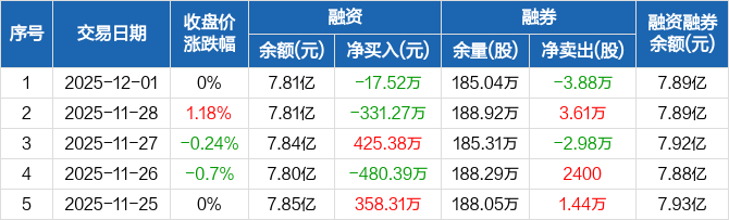 碧水源:融资净偿还17.52万元,融资余额7.81亿元(12-01)