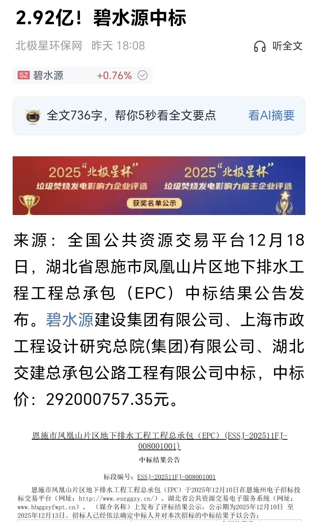 $碧水源(SZ300070)$ 又中标了