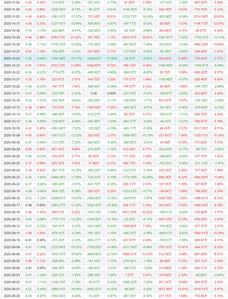 $碧水源(SZ300070)$ 回顾碧水源戒指2025年12月25日资金流向!一共142个交易日!其中主力资金31个交易日主力资金流入!111个交易日主力资金流出!散户32个交易日资金流出!112个交易日资金流入!以上统计后的结算数据不知是否有纰漏?请懂看数据的朋友指导更正!在下虚心学习!