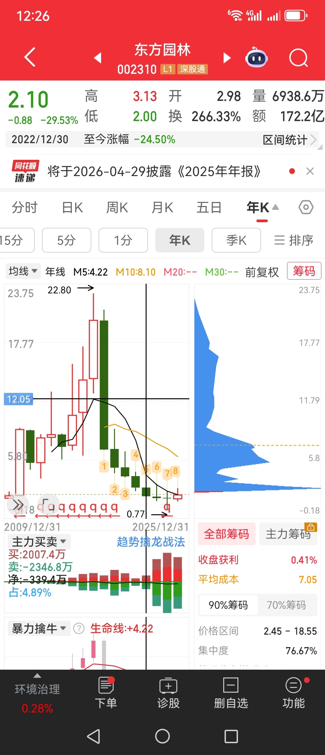 $碧水源(SZ300070)$ 年线筹码分布和东园2022年一样,最终1.3左右