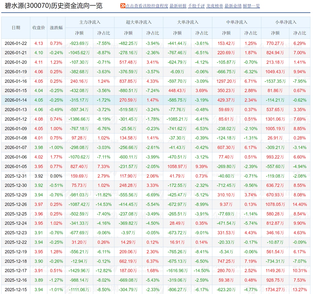 $碧水源(SZ300070)$ 短短27天!有21天主力都是卖出的!只有6天是买进的!其它21天全部靠散户在维稳股价!碧水源的主力和大股东一直这么卖出不是这短短一个月这样子!差不多11年了!主力和大股东的筹码怎么就卖不完了!主力和大股东如果做多股价翻几倍都没问题!这两个老6拼命做空碧水源!无语!