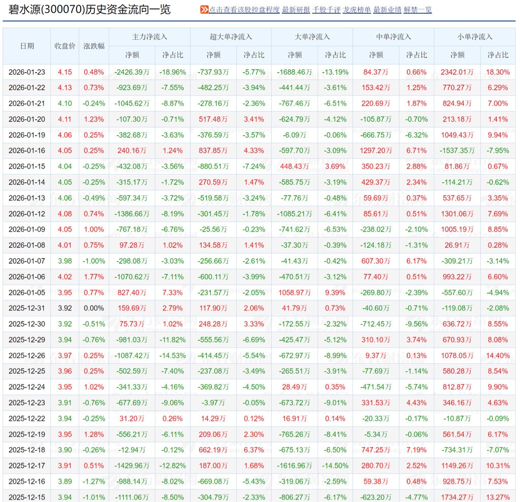 $碧水源(SZ300070)$ 28天!有22天主力和大股东净流出!特别是今天流出这么多!!!他们如果不这样!股价怎么会一直停留在谷底!!!