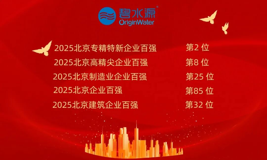 碧水源已连续4年上榜北京企业百强榜,今年斩获5项殊荣,不仅是对过往稳健经营的充分肯定,更彰显了公司在科技创新、绿色发展等多维度的综合竞争力。
