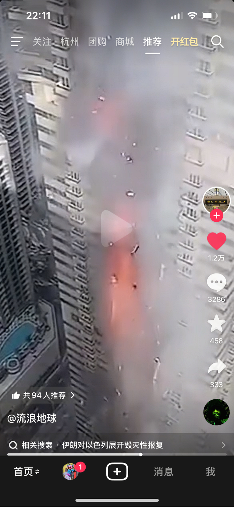 800里加急!伊朗对以色列平民住宅发射导弹攻击!这样下去!下一步极有可能互相会炸