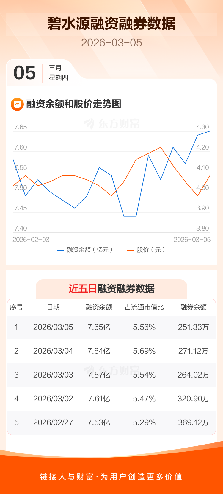 交易所最新数据显示,碧水源于2026年3月5日获融资买入2863.96万元,融资偿还2730.93万元,当日融资净买入133.03万元。目前,该股融资余额7.65亿,占流通市值比例为5.56%。