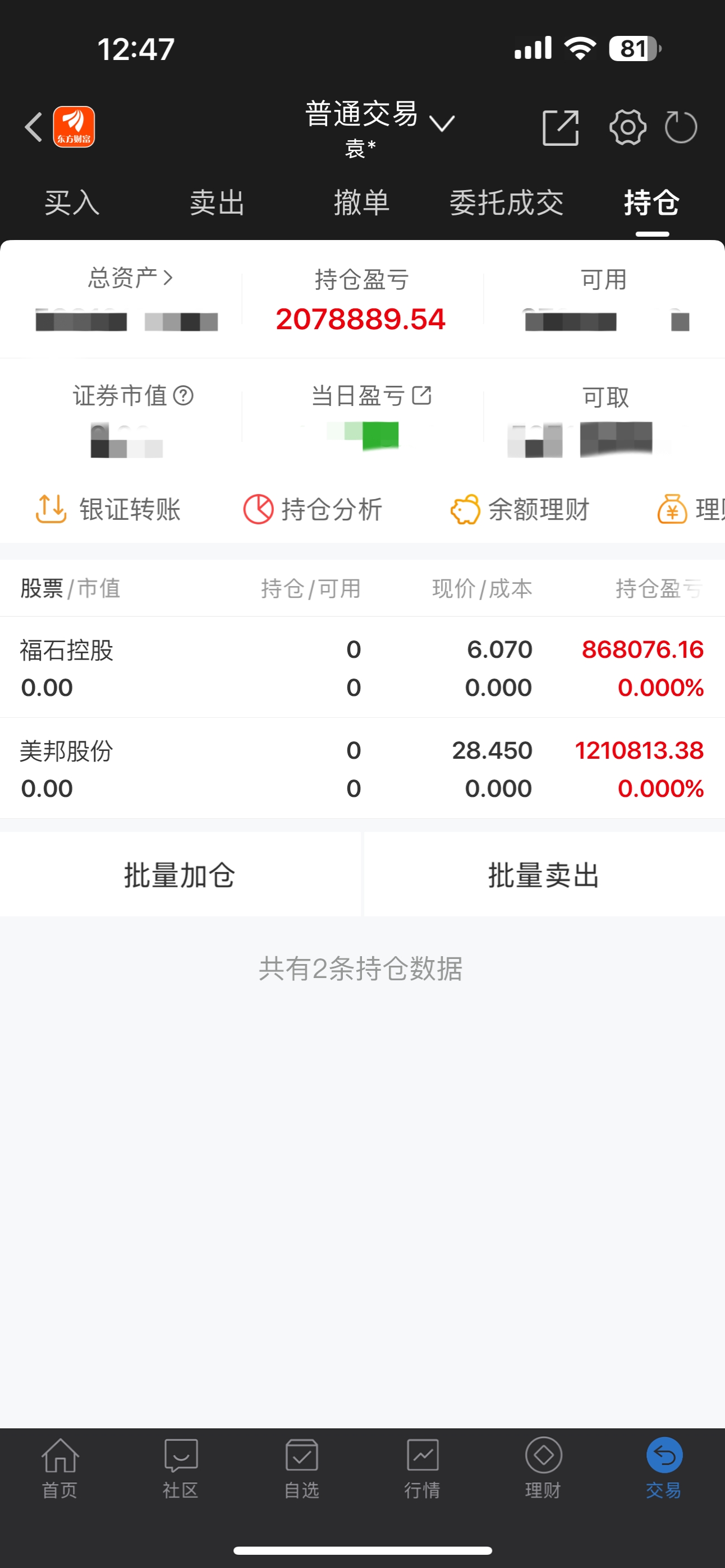 早盘止盈清掉$福石控股(SZ300071)$ ,小红书板块的$遥望科技(SZ002291)$ 今天继续一字,没给机会!后续看看就好