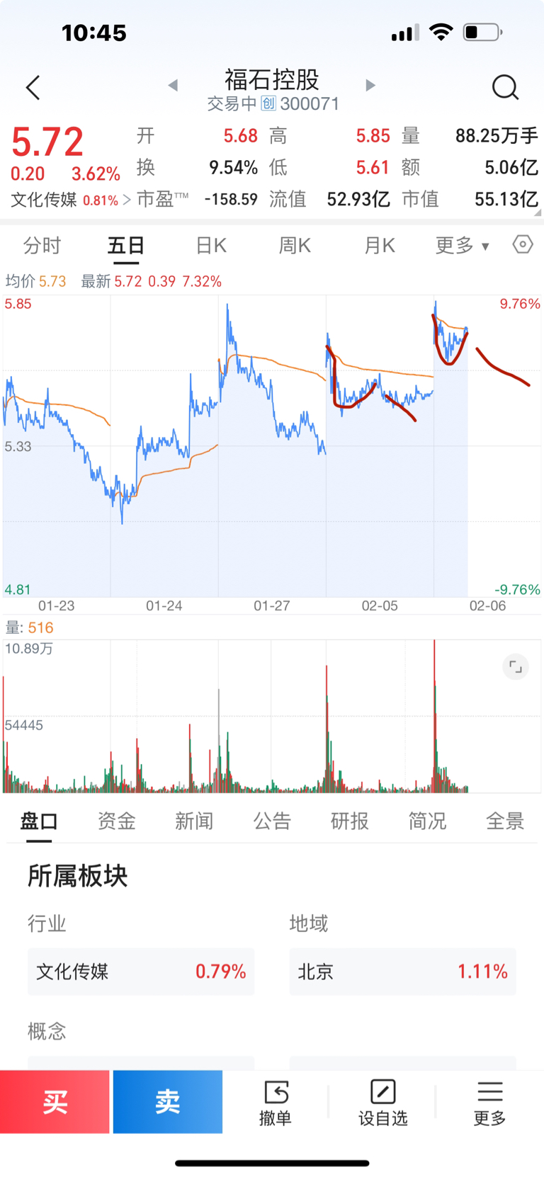 $福石控股(SZ300071)$ 跟昨天情况一样,现在是高点,接下来向下走。卖吧