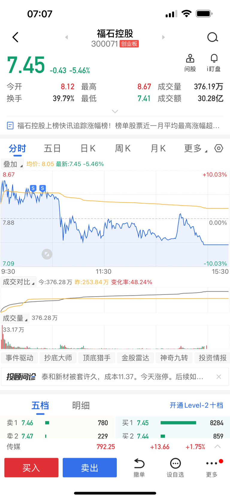 $福石控股(SZ300071)$ 刺激呀!上窜下跳!