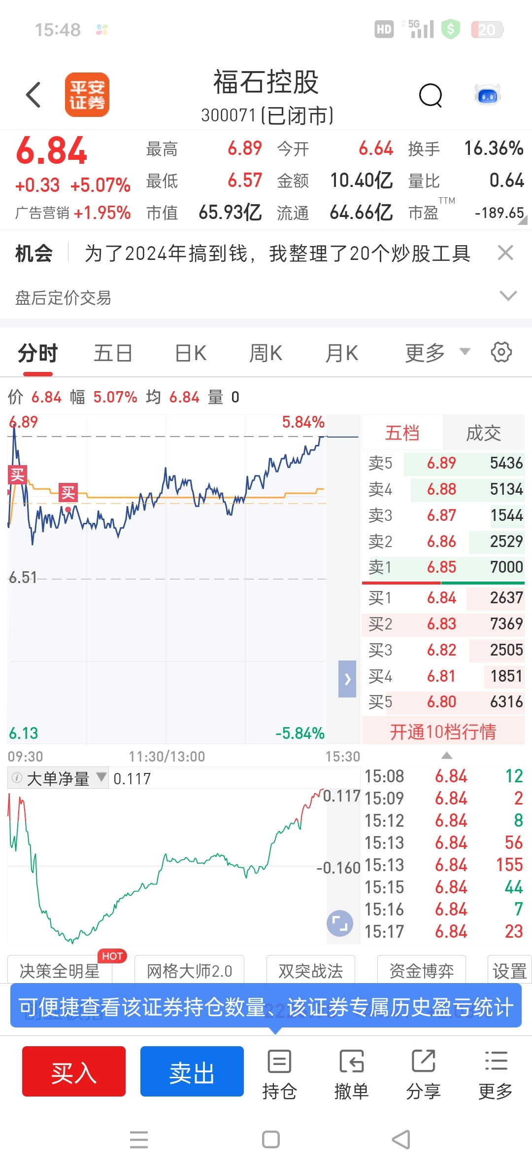 $福石控股(SZ300071)$ 没上五日线,反包失败,庄明天轻点揍我