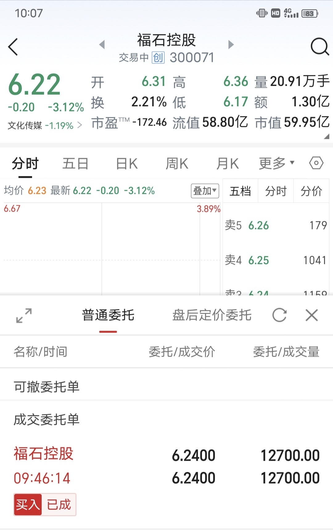 $福石控股(SZ300071)$ 兄弟们我尽力了