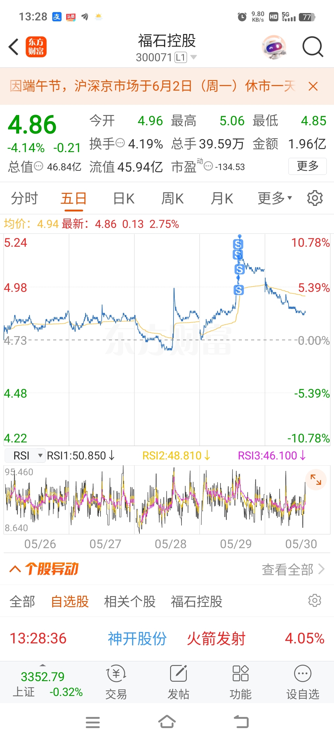 $福石控股(SZ300071)$ 卖的到位吧