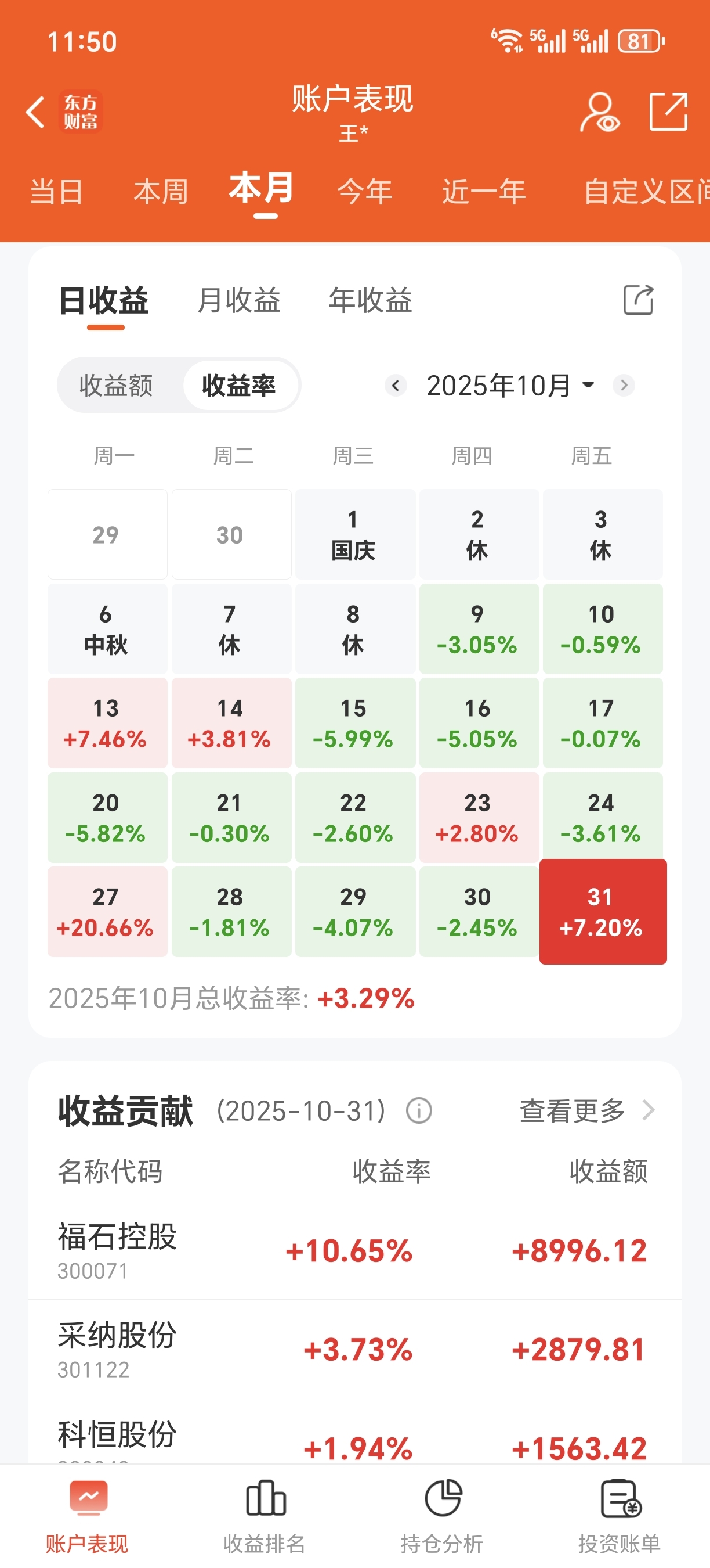 $福石控股(SZ300071)$ 10月份股票很难做,心情很差,感谢福石#炒股日记# #强势机会# $采纳股份(SZ301122)$ $东方财富(SZ300059)$