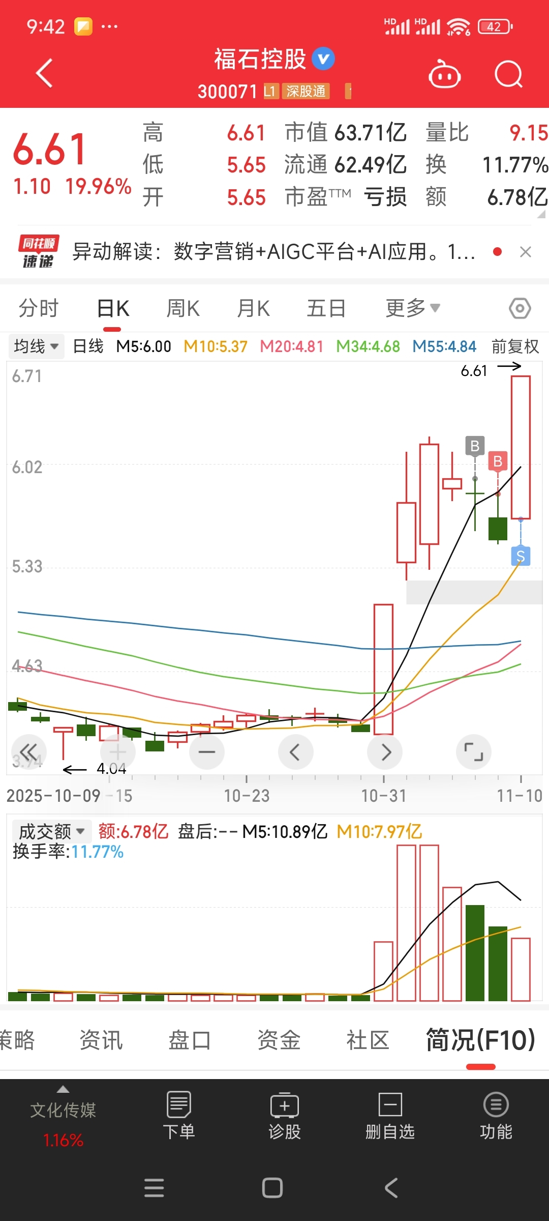 $福石控股(SZ300071)$ 谁比比也别听就对了