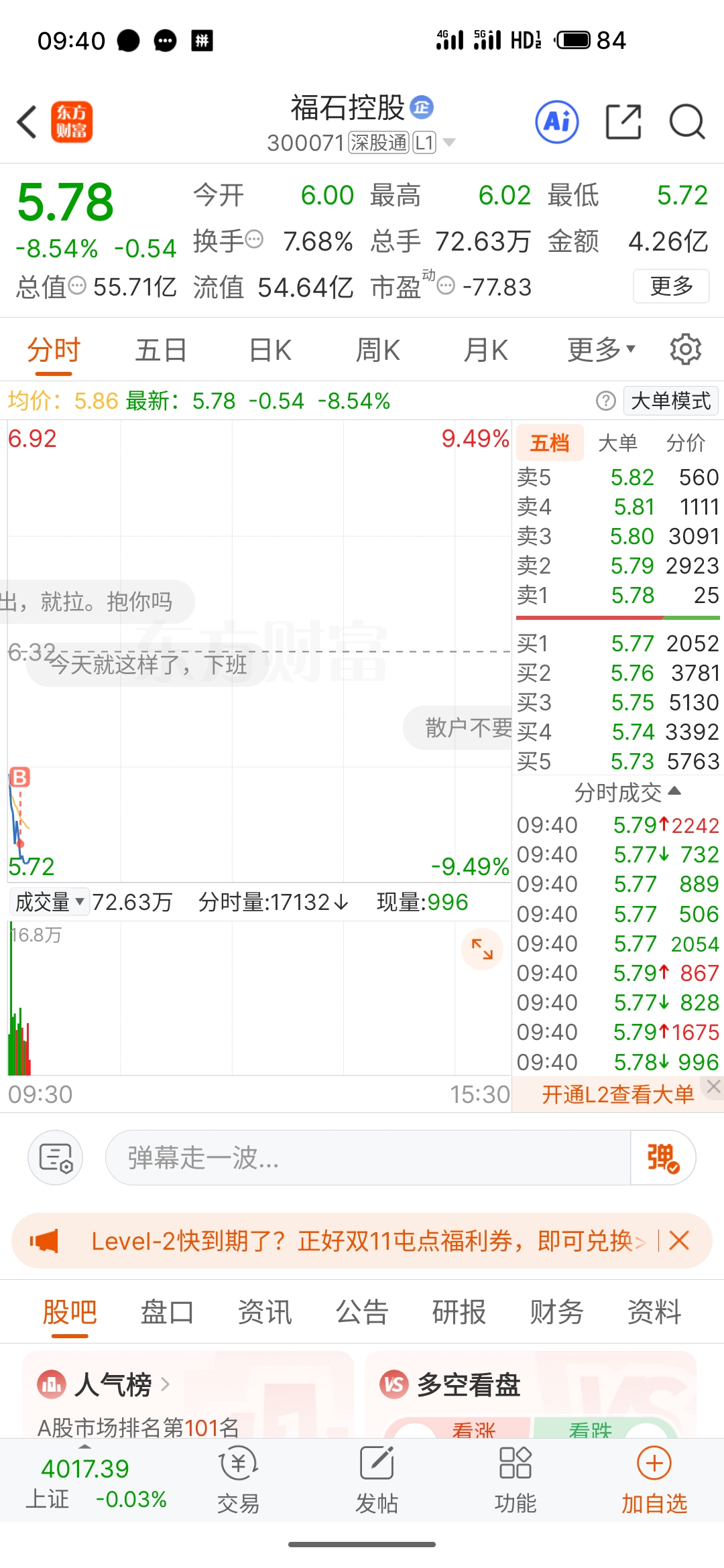 $福石控股(SZ300071)$ 跌停都不怕你,只因我是真的爱你
