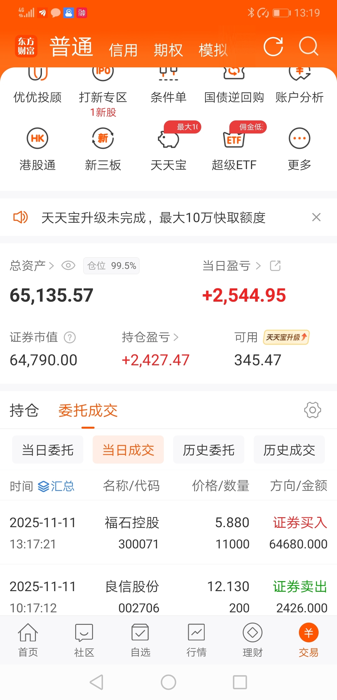 2025.11.11———1213清仓良信股份,5.88转战福石控股。个人实盘实