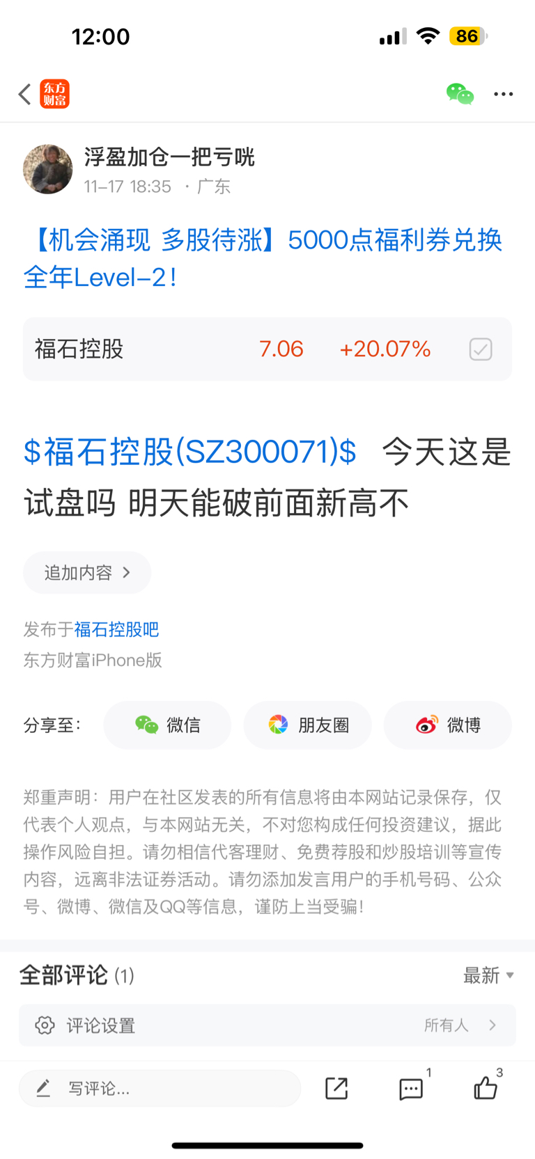 温馨提示: 1.根据《证券法》规定,禁止编造、传播虚假信息或者误导性信息,扰乱证券市场;2.用户在本社区发表的所有资料、言论等仅代表个人观点,与本网站立场无关,不对您构成任何投资建议。用户应基于自己的独立判断,自行决定证券投资并承担相应风险。《东方财富社区管理规定》