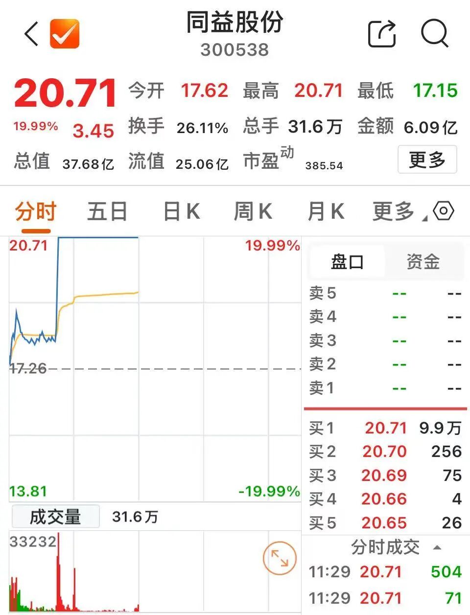 早盘,A股光刻机、光刻胶概念异动。个股层面,同益股份从10时13分开始的3分钟内,股价拉升超过15%,最终封住20%幅度涨停。凯美特气、芯源微、新莱应材等概念股纷纷跟涨。