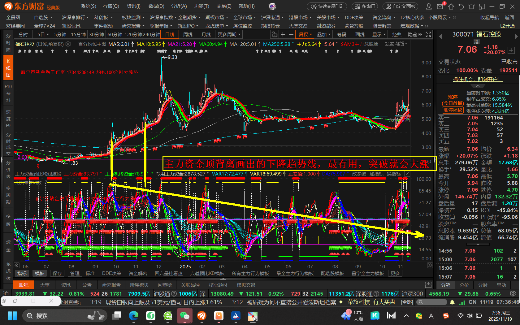 主力资金顶背离画出的下降趋势线,才具有最好的指导作用