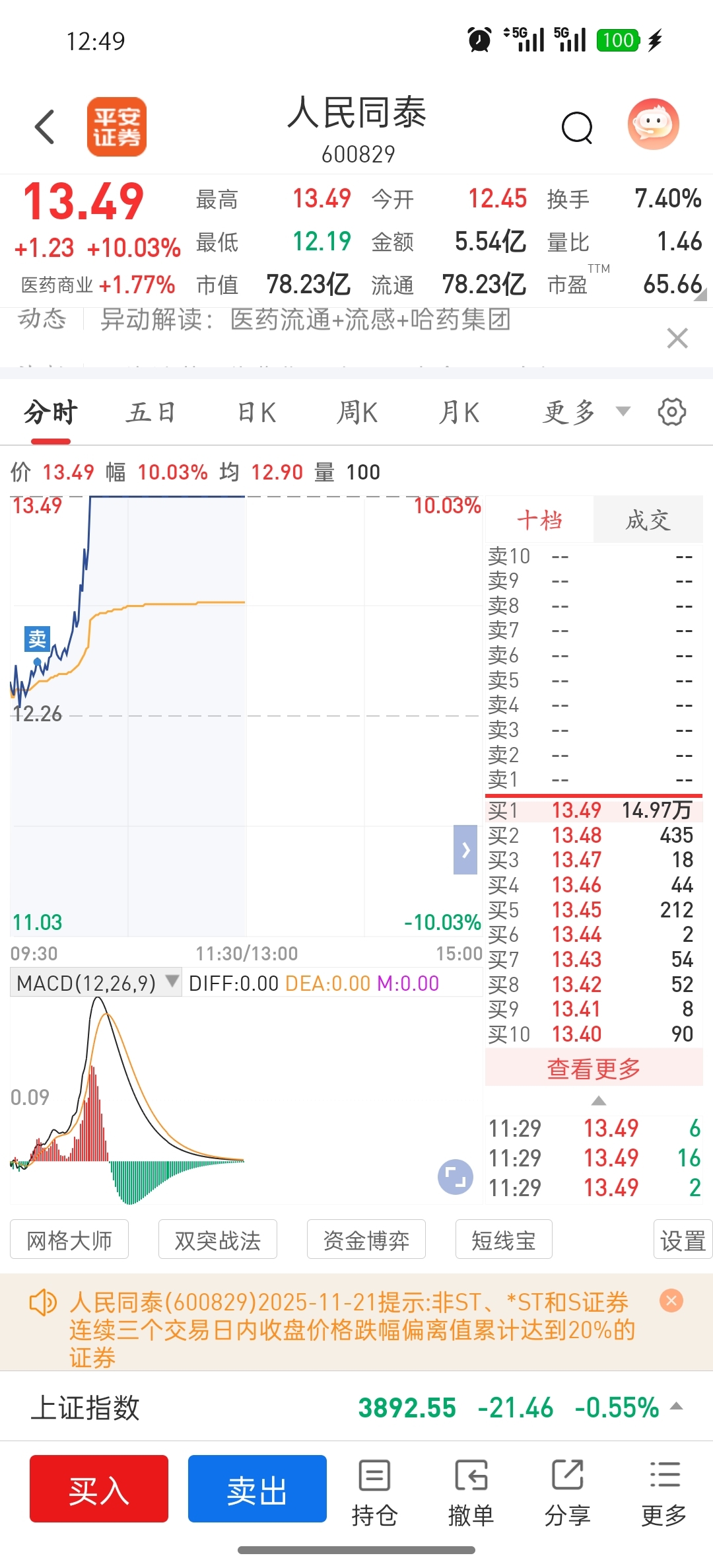 希望你能争点气,为了你,我错过了什么?人名同泰涨停,我在低位就清仓了。。。你一定