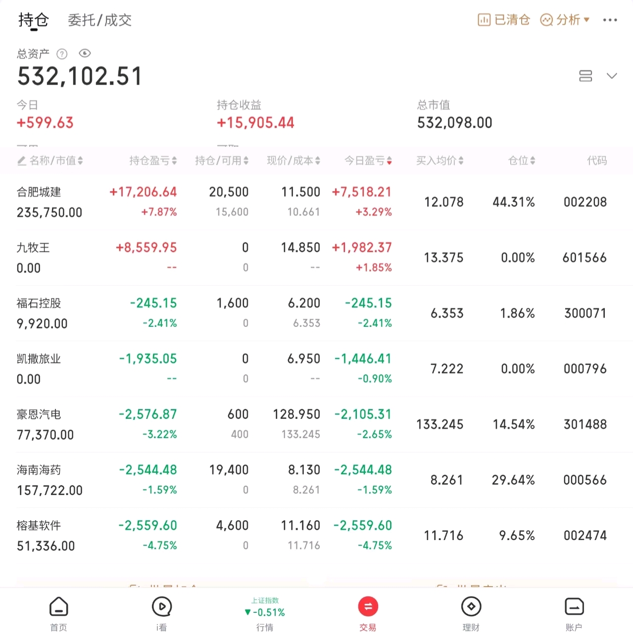 12.3,,账户53.2卖飞九牧王,除了城建外进的所有票全部挨揍,榕基今天睡地板