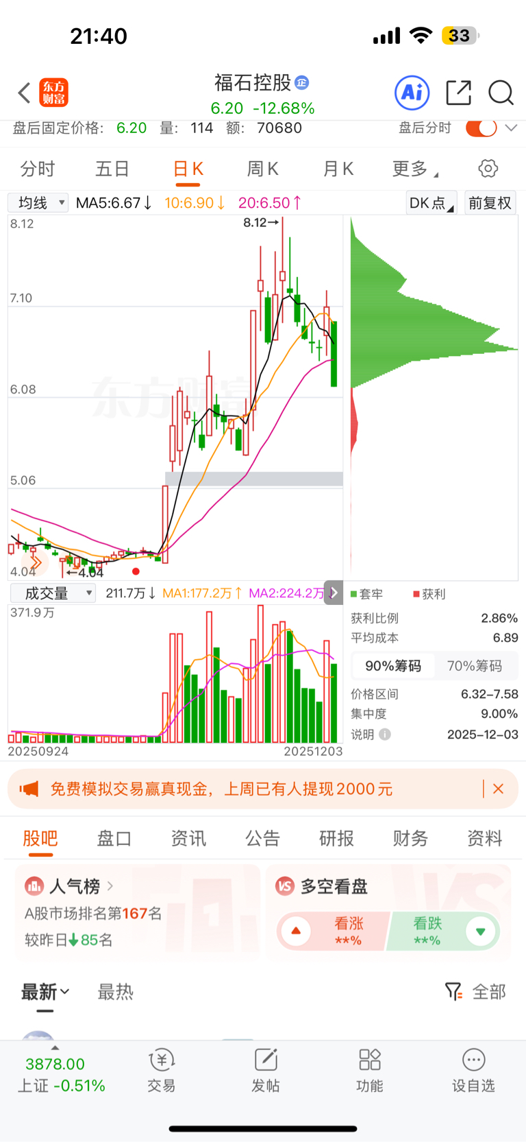 $福石控股(SZ300071)$ 格局打开 解套就好