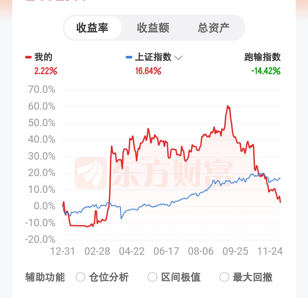今年最高赚60个点,这四个月全亏光了,人黑起来天天一两千一两万的亏!