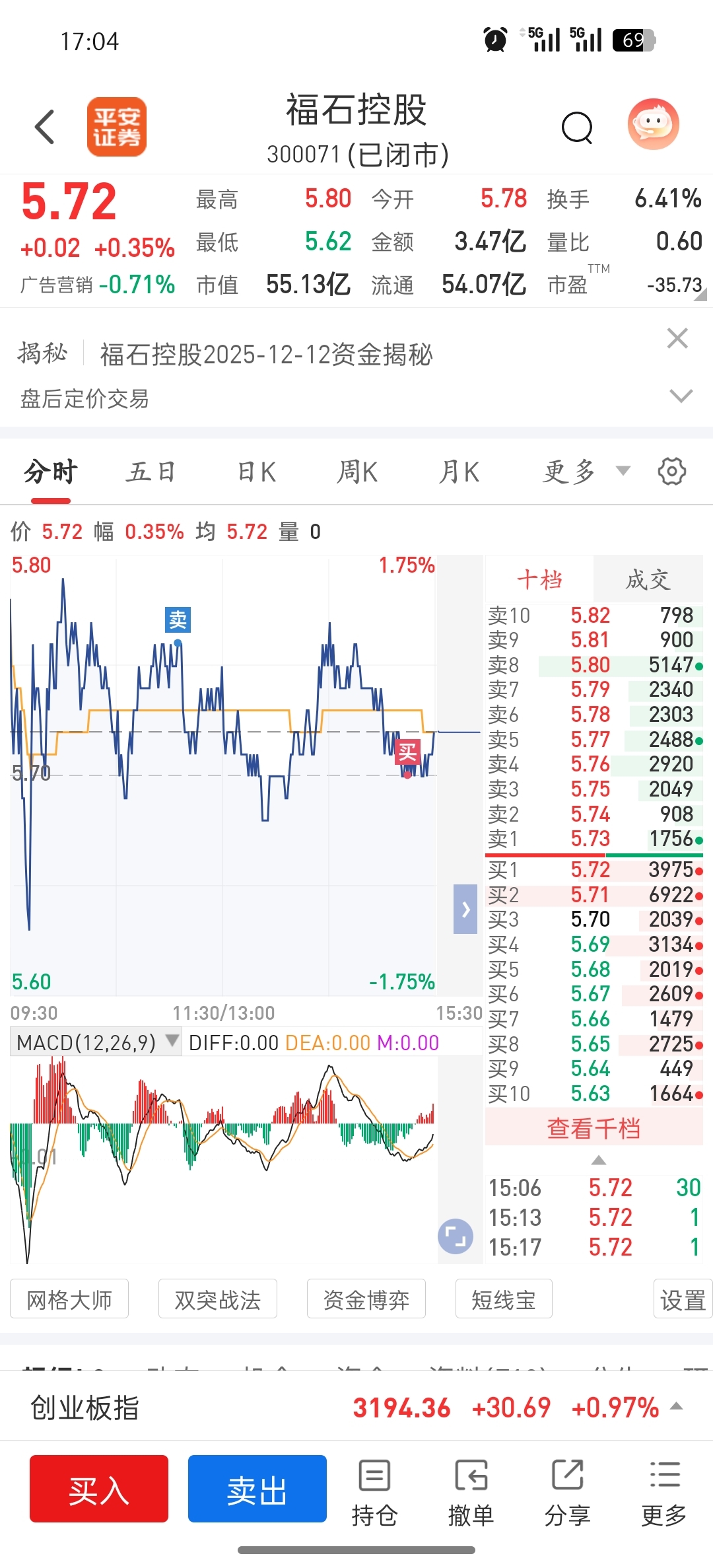 $福石控股(SZ300071)$ 勉强T了一个点。真是折腾人。