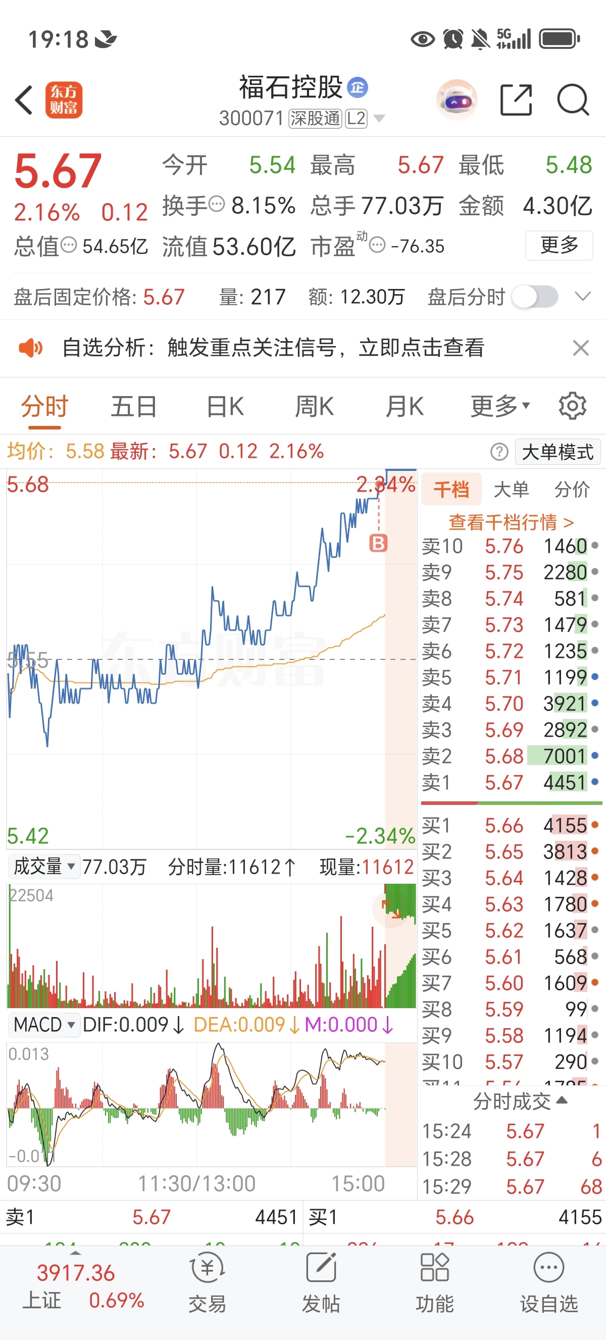 $福石控股(SZ300071)$ 尾盘进的,明天给口肉吃啊