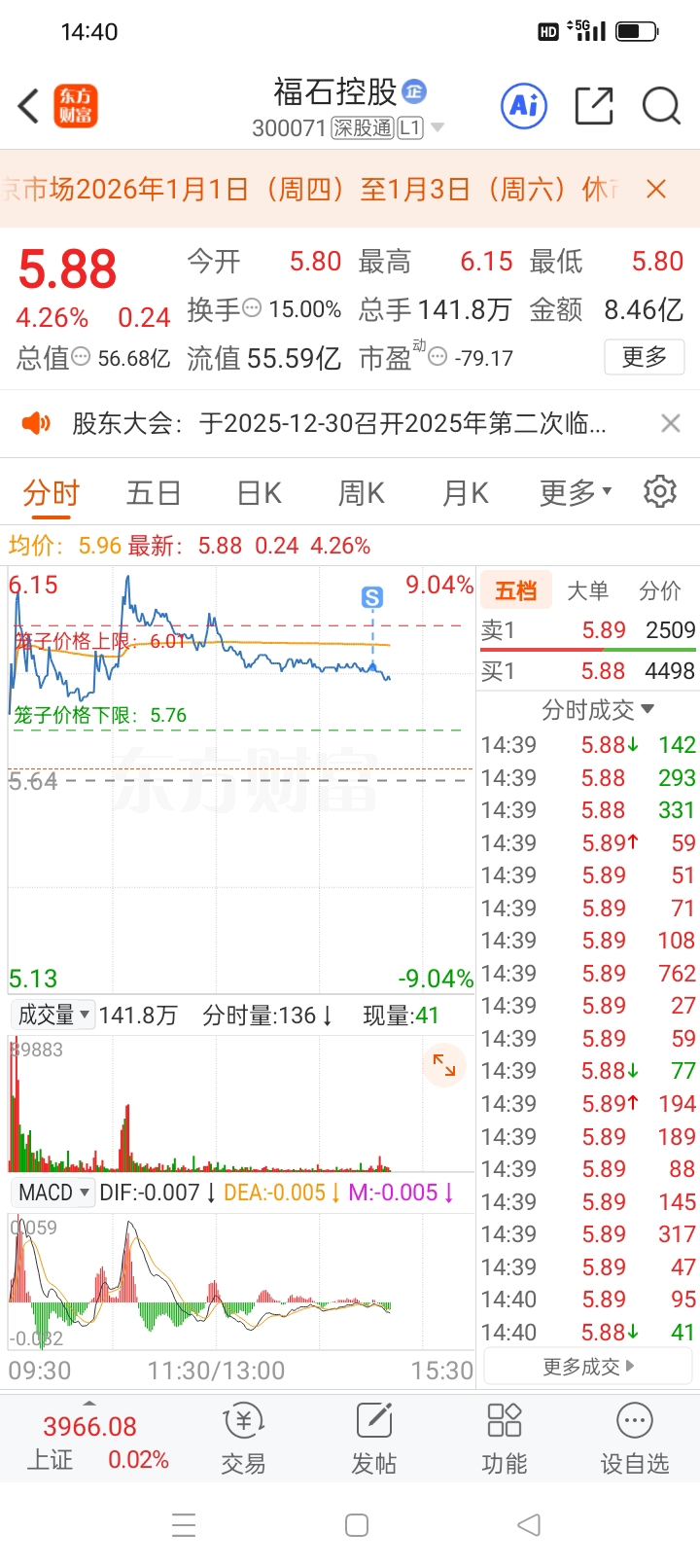 $福石控股(SZ300071)$ 老子走了,不陪你玩了,今天高点没出,以为你会有所表现,谁料走出反方向