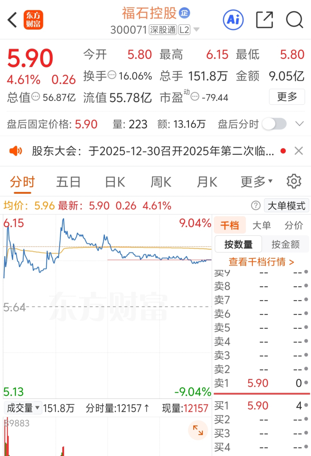 $福石控股(SZ300071)$ 挂5.9一直没进,后改成6进,好样的~还有5.88等着,差一千多