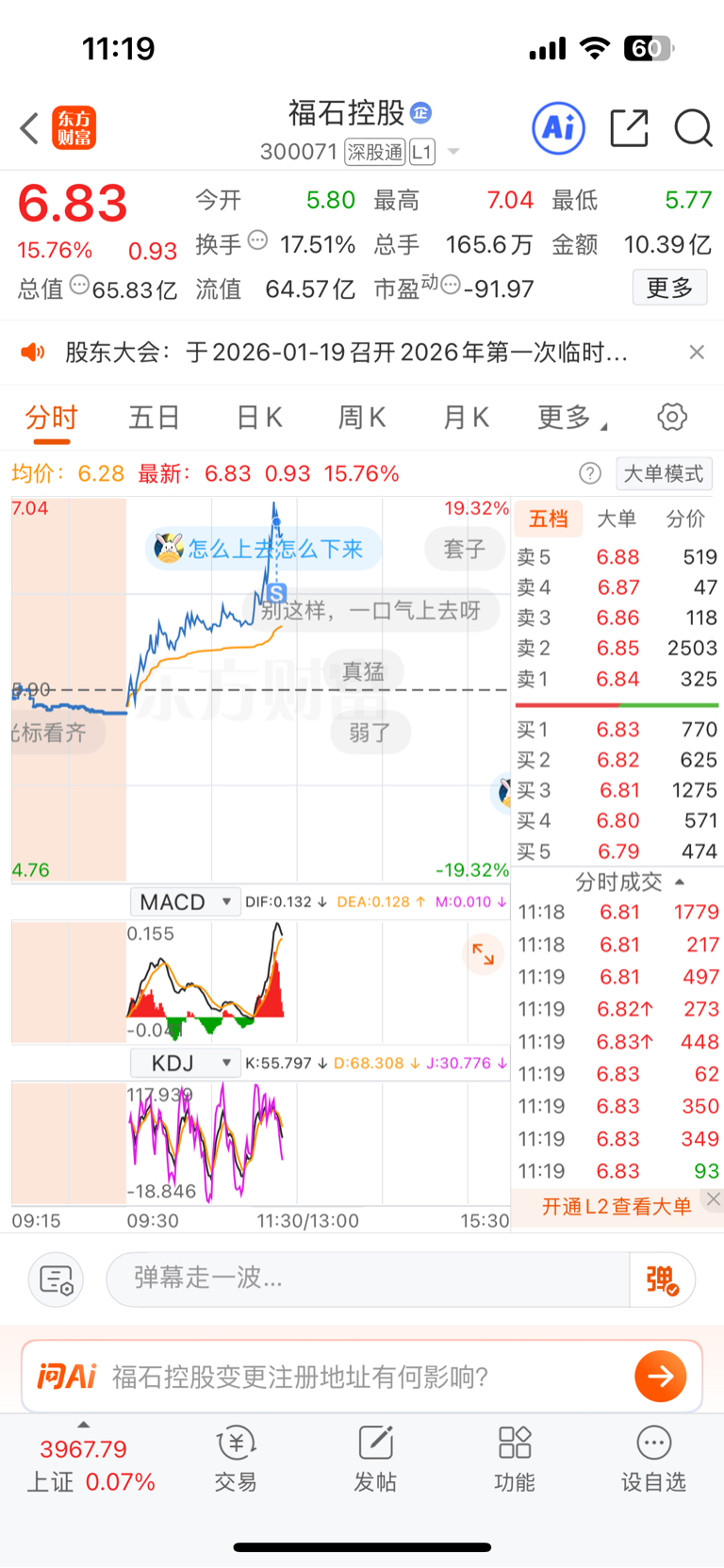 $福石控股(SZ300071)$ 我希望能涨停!兄弟们