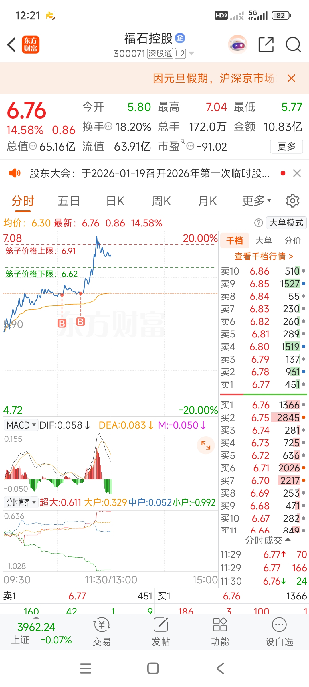$福石控股(SZ300071)$ 不想多说,昨天尾盘看好蓝标跟福石,没下单,早盘追高冲了