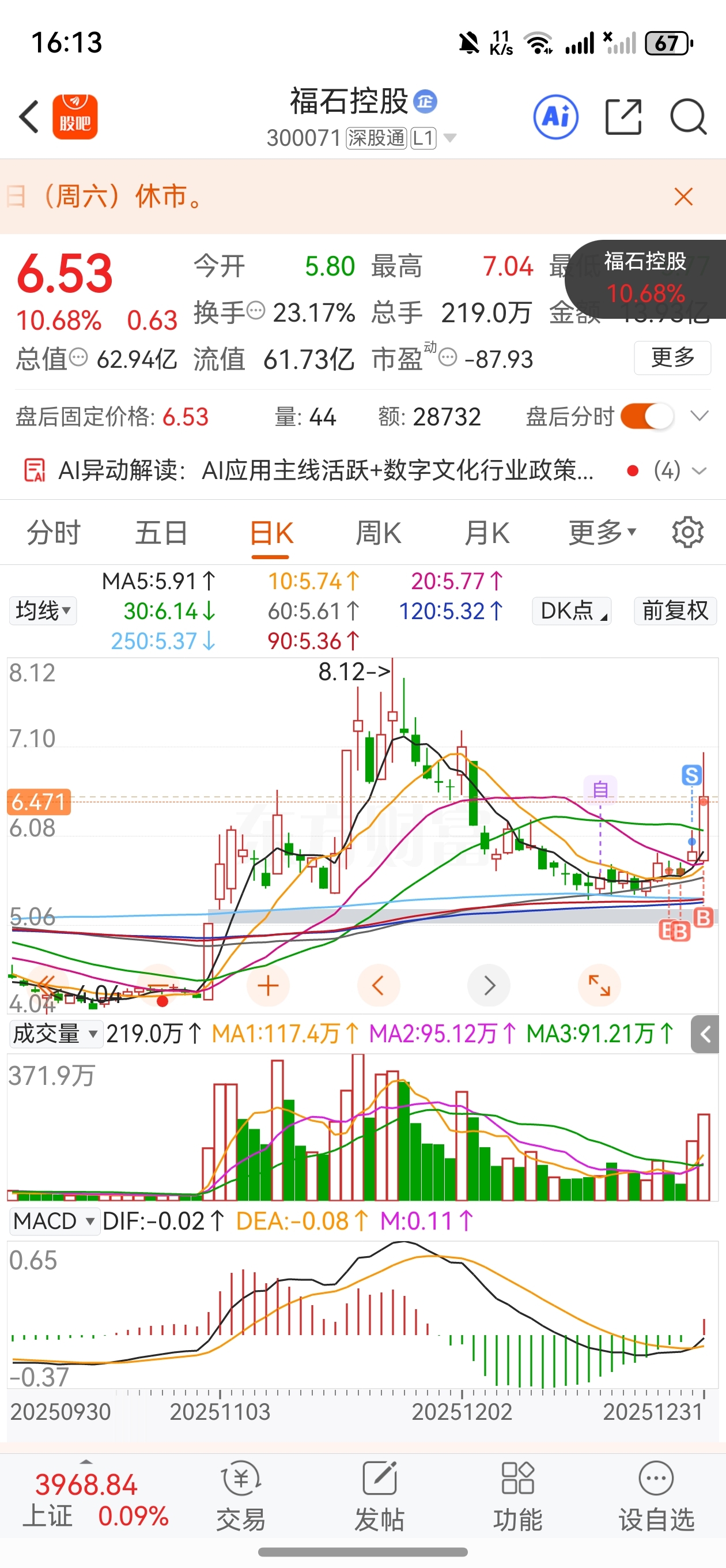 $福石控股(SZ300071)$ 又被套住啦,周一开盘就跑,果然不能追涨,要信早信