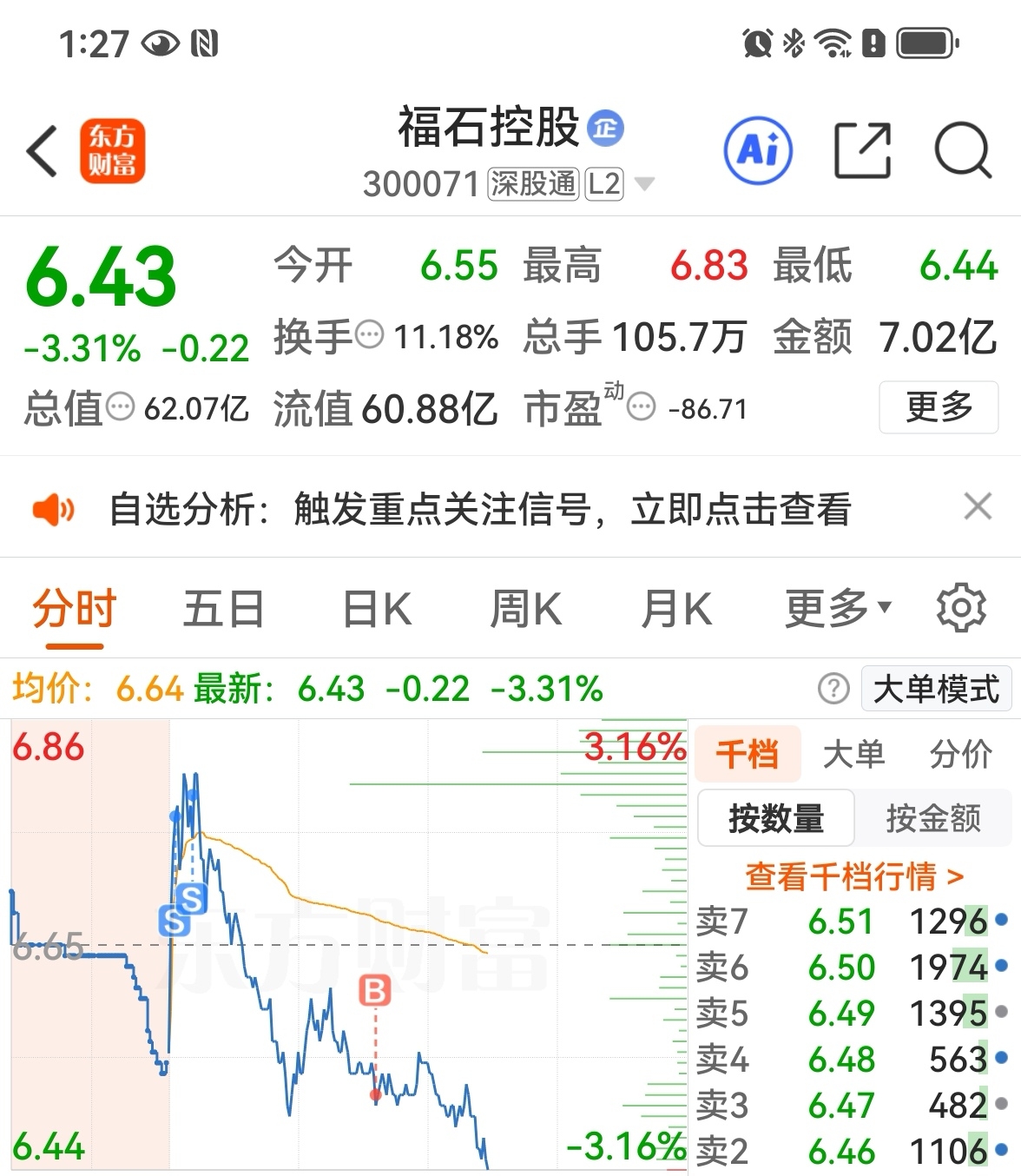$福石控股(SZ300071)$ 接早了?