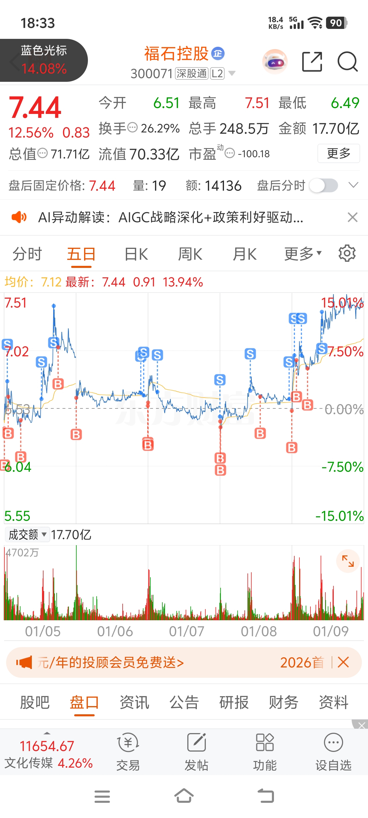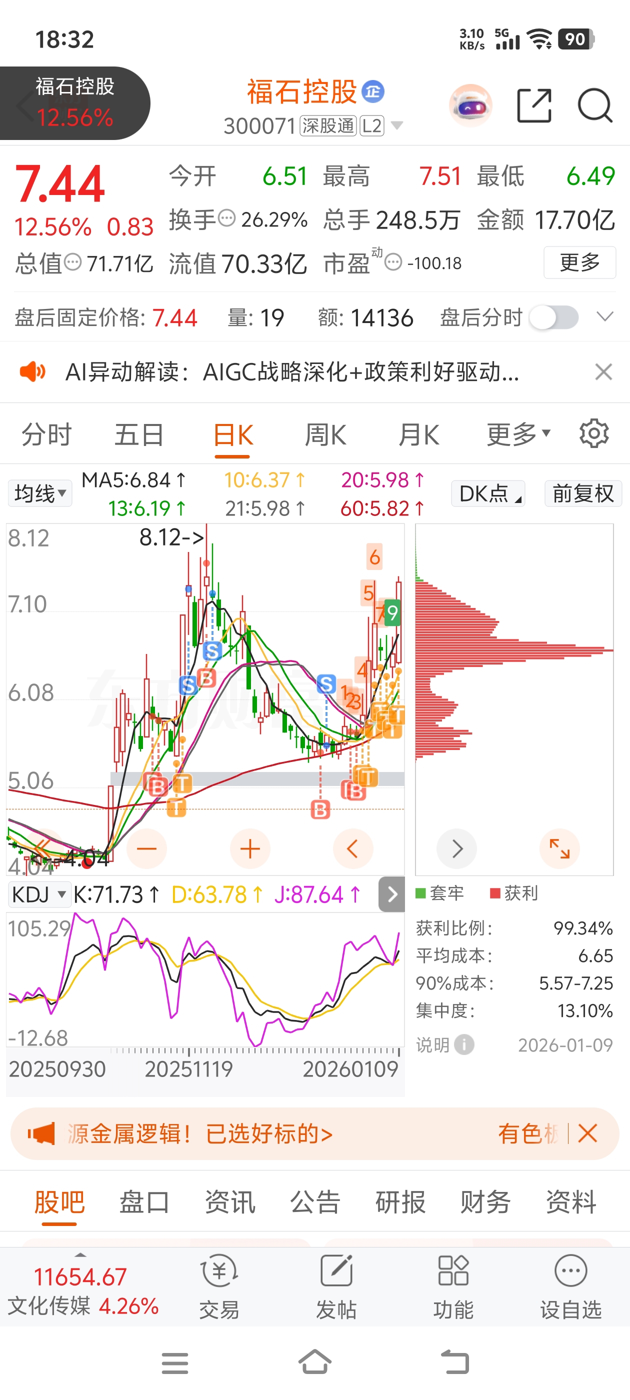 $福石控股(SZ300071)$ 都说福石不好,但是我知足了,虽然蓝色没拿住,但是福石盈利也很好了#炒股日记# #收盘点评#