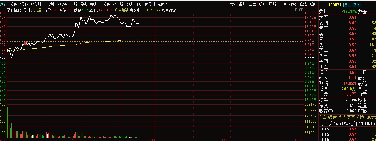 $福石控股(SZ300071)$ 如再次突破8.80会涨停,如不能突破估计就要洗洗再涨了。