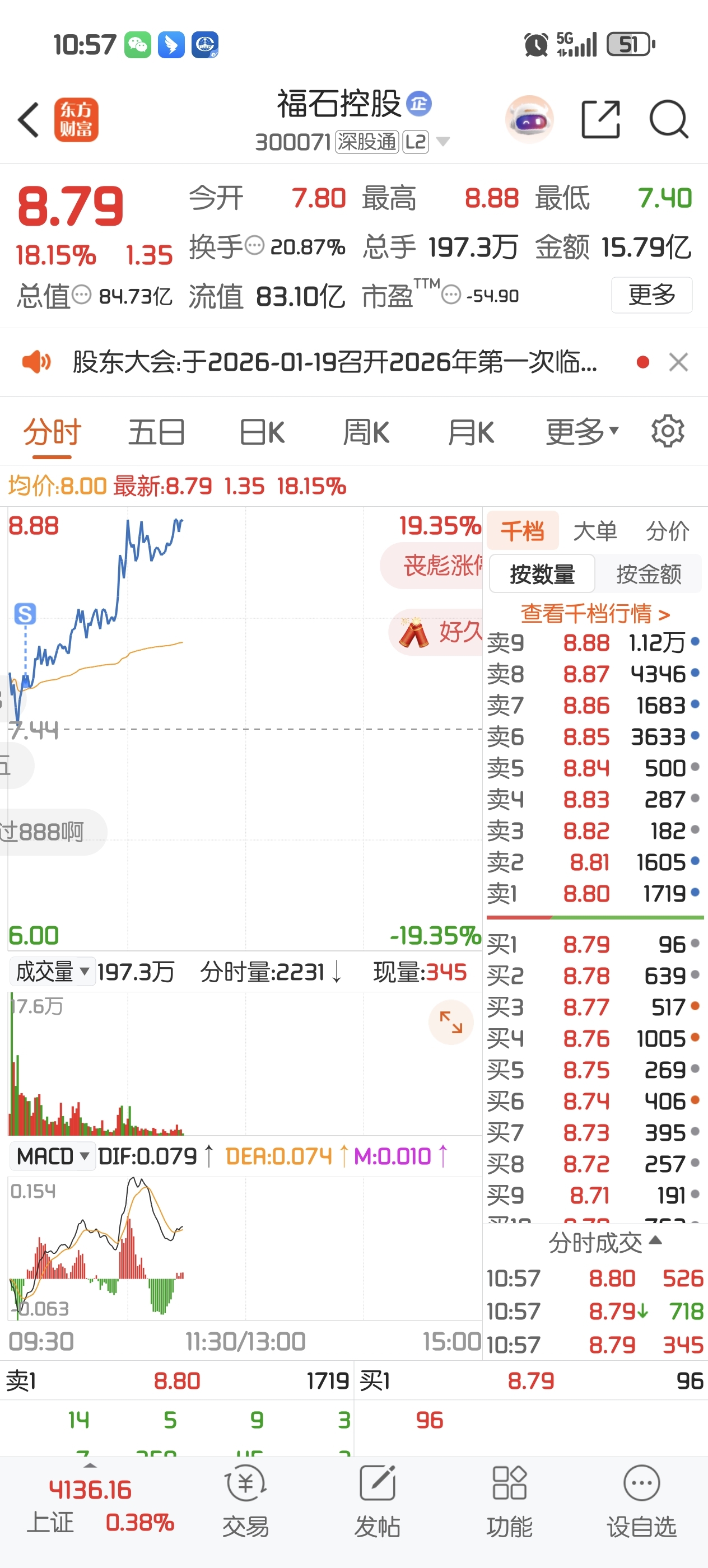 $福石控股(SZ300071)$ 没命赚那个钱,早上ai那么强,他高开低走,拉上去就出了