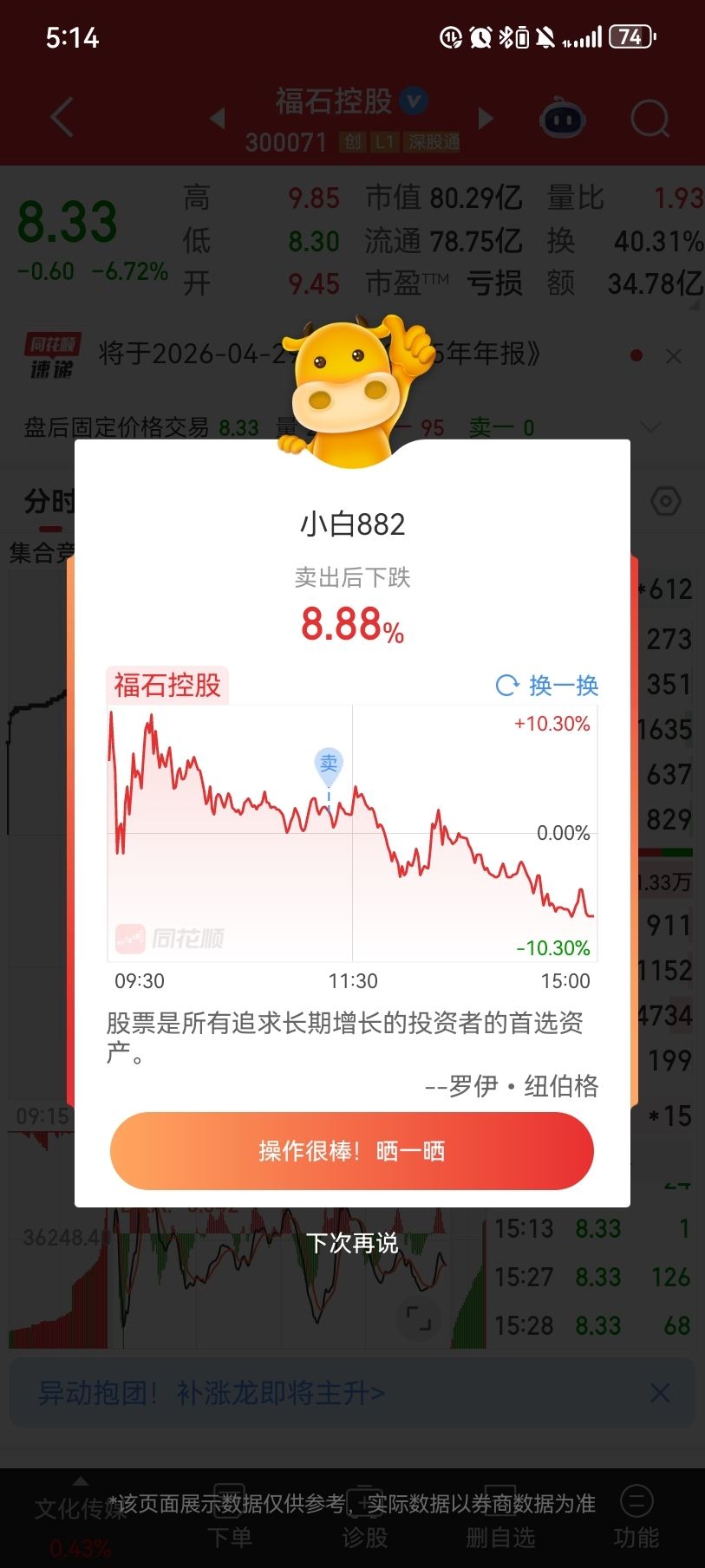 $福石控股(SZ300071)$ 好像出利好了,我被洗走了