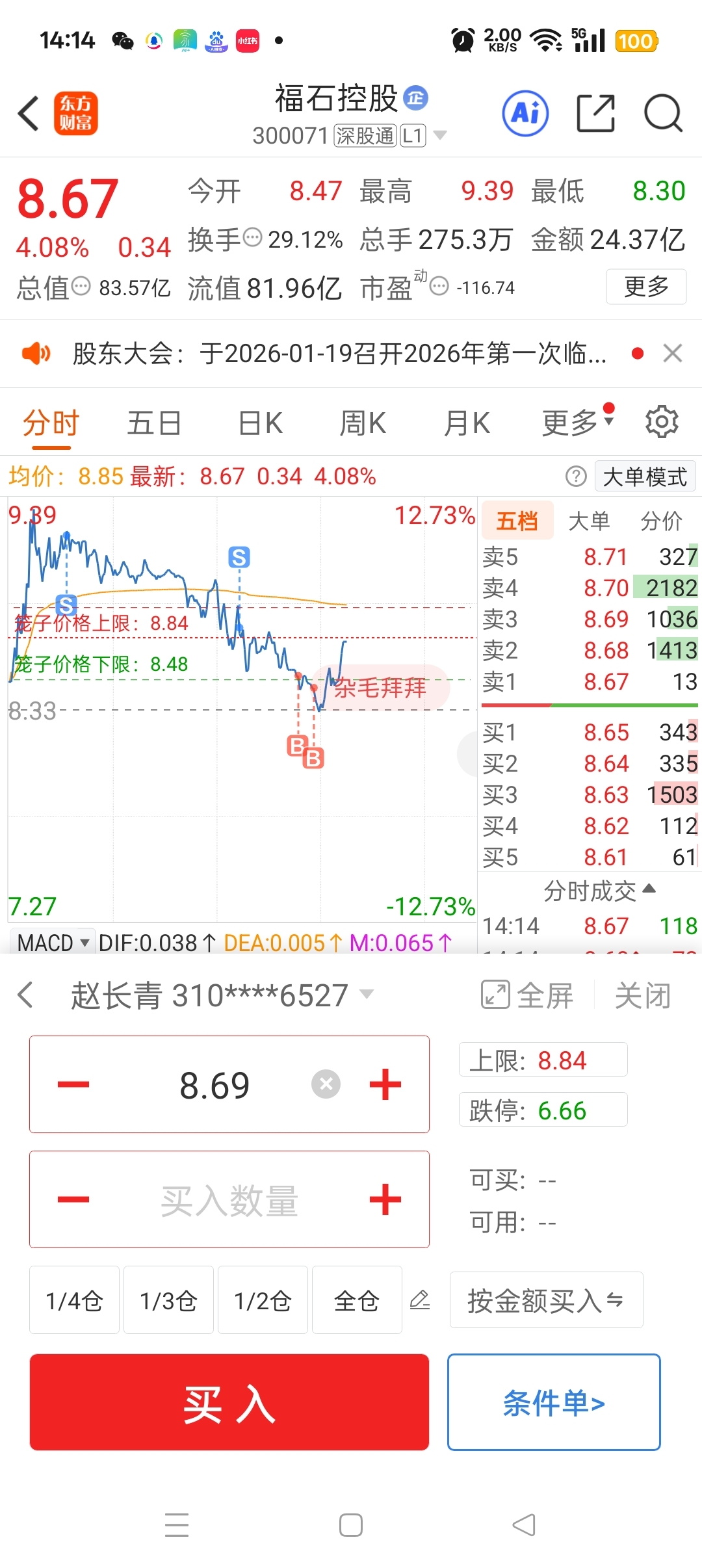$福石控股(SZ300071)$ 做点小买卖,赚点孩子的奶粉钱