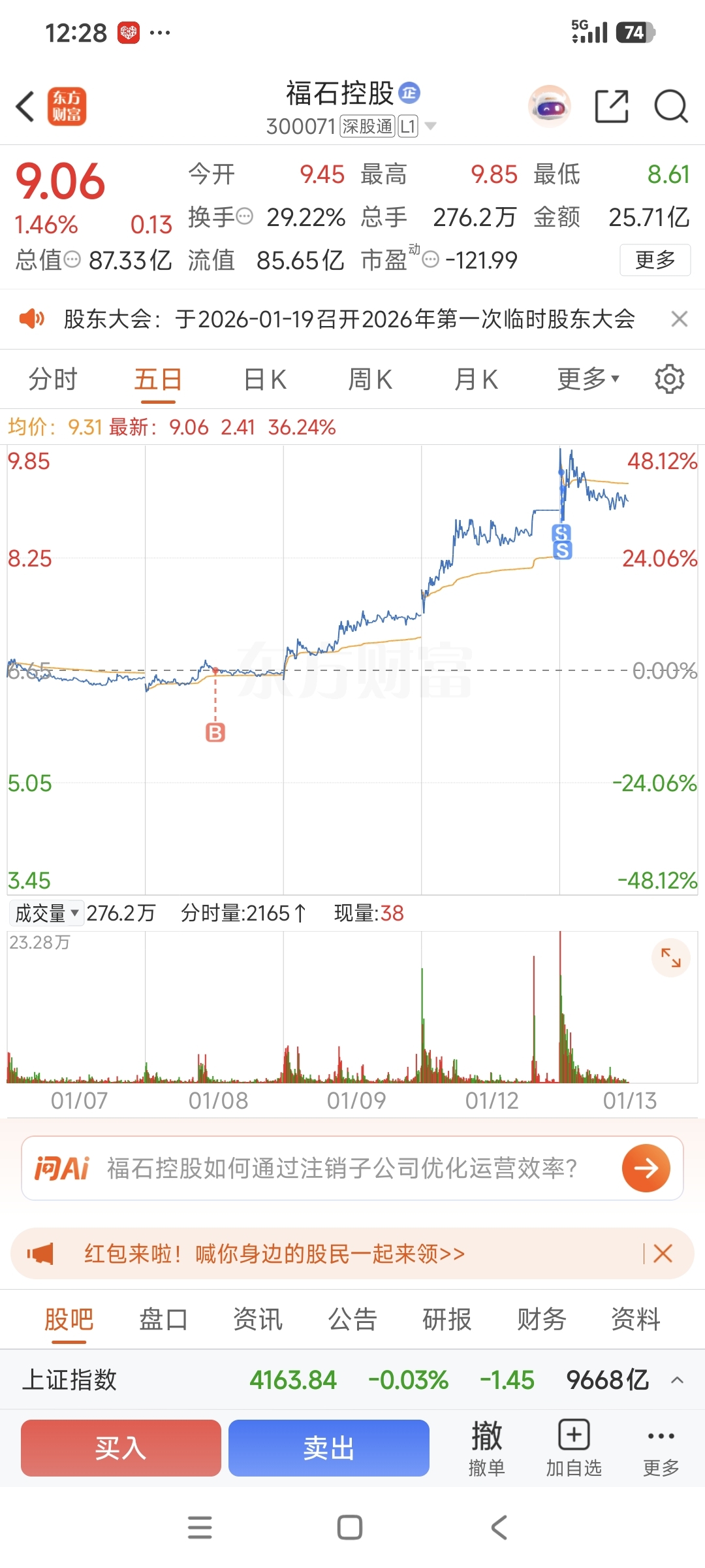 $福石控股(SZ300071)$ 差不多50个点,知足了,感谢主力赏饭吃,